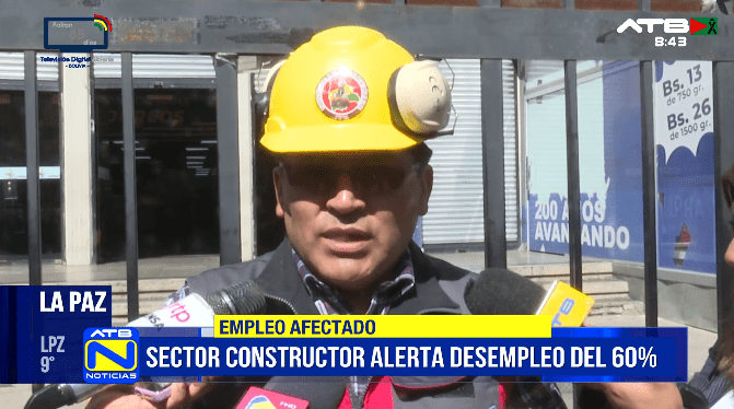 La Paz, 05 de mar 2026 (ATB Digital).- La dirigencia sindical de trabajadores constructores encendió las alarmas este jueves al revelar que el sector enfrenta una tasa de desempleo del 60% de su mano de obra, consecuencia de una tormenta de factores adversos que incluyen el alza sostenida en el costo de los insumos de construcción, la reducción de obras tanto públicas como privadas, y la presión económica que obliga a los trabajadores a cobrar menos por sus servicios para mantenerse competitivos.