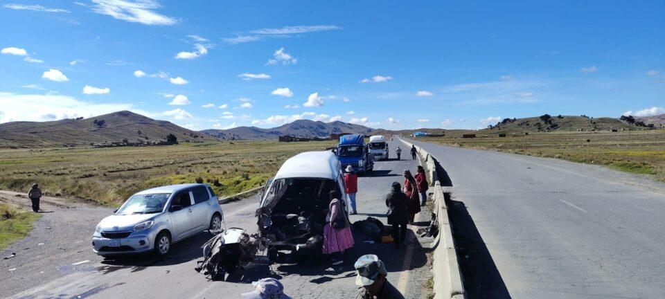 La Paz, 07 de mar 2026 (ATB Digital).- Un accidente de tránsito se registró la mañana de este sábado 7 de marzo en la carretera La Paz–Achacachi, a la altura de la fábrica Lácteosbol. El hecho involucró a dos vehículos, uno de color rojo de servicio interprovincial y otro blanco de uso particular, que colisionaron en ese sector.