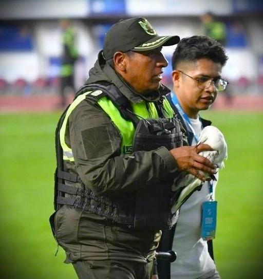 La Paz, 08 de mar 2026 (ATB Digital).- Durante el desarrollo del Torneo Amistoso en La Paz, este 8 de marzo, un hecho inesperado llamó la atención de los presentes cuando un ave ingresó al campo de juego. Ante la situación, servidores policiales actuaron de inmediato y con cautela para proteger la integridad del animal.