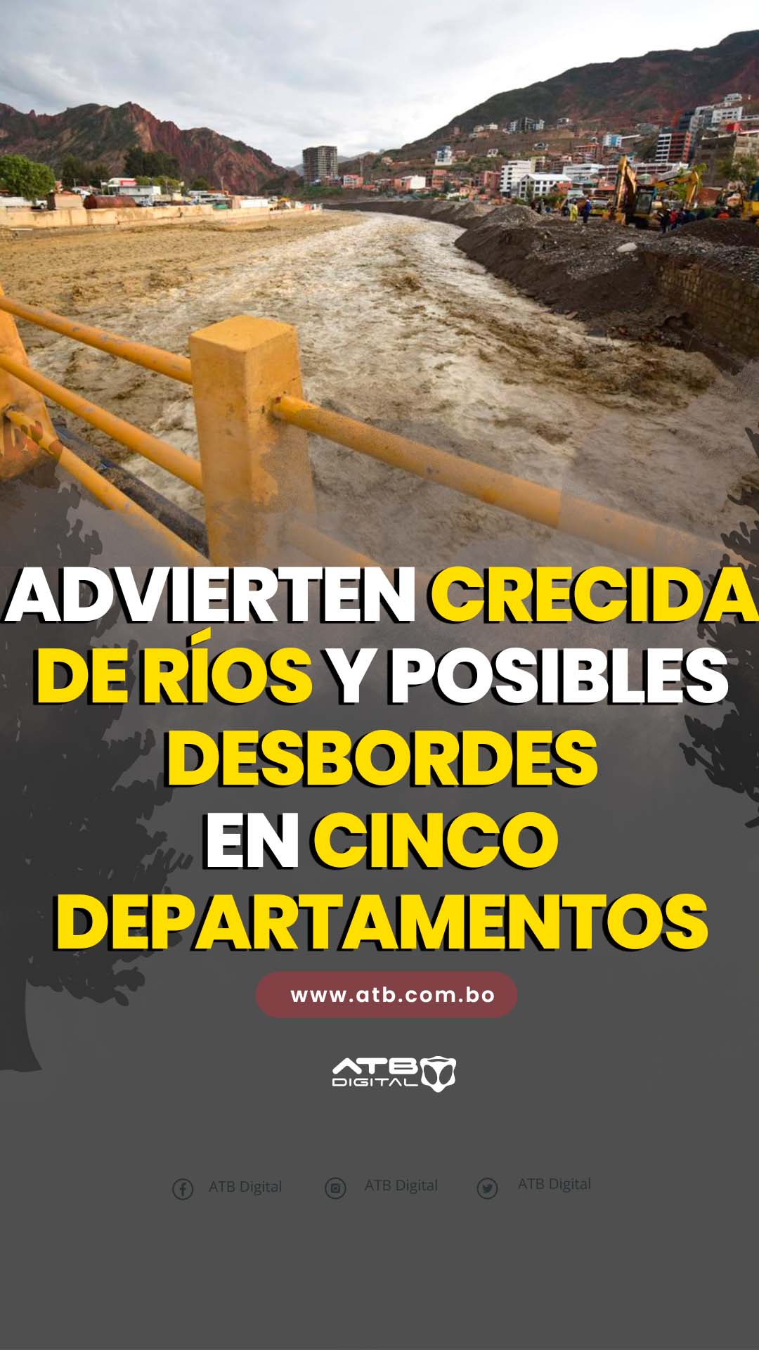 La Paz, 9 de mar 2026 (ATB Digital).- El Servicio Nacional de Meteorología e Hidrología emitió una alerta naranja por el aumento del nivel de varios ríos en el país, vigente del 9 al 13 de marzo. Las lluvias podrían provocar crecidas y posibles desbordes en cuencas que afectan a La Paz, Cochabamba, Santa Cruz, Beni y Tarija. Las autoridades recomiendan tomar precauciones, evitar acercarse a los ríos y viajar con cuidado durante estos días.
