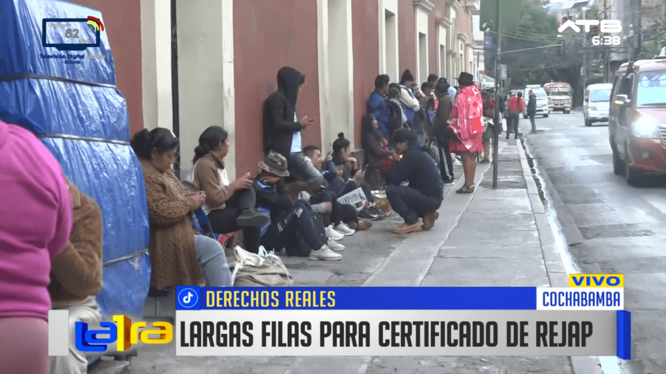 Cochabamba, 9 de mar 2026 (ATB Digital).- En Cochabamba, largas filas de personas se forman desde la madrugada en puertas de las oficinas de Derechos Reales. Los ciudadanos madrugan para poder realizar distintos trámites y asegurar su atención.