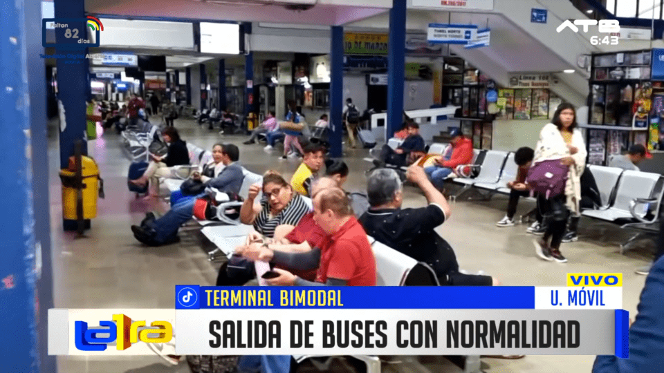 Santa Cruz, 9 de mar 2026 (ATB Digital).- Desde la Terminal Bimodal se reporta que las salidas y llegadas de buses se realizan con normalidad. Esto ocurre luego de que durante el fin de semana se registraran inconvenientes en la salida por la carretera antigua.