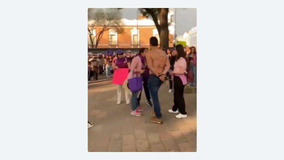Mundo, 10 de mar 2026 (ATB Digital).- Un hombre fue forzado a abandonar una marcha por el Día de la Mujer, a la que acudió en compañía de su novia, luego de que su expareja le reclamara en público por no cubrir las cuotas de alimentación del hijo que tienen en común. El presunto infractor había llamado la atención de los asistentes porque llevaba escrita la frase: “Me callo para que ellas hablen” sobre su torso desnudo. El hecho sucedió en la ciudad mexicana de Tlaxcala y se viralizó rápidamente en las redes sociales.