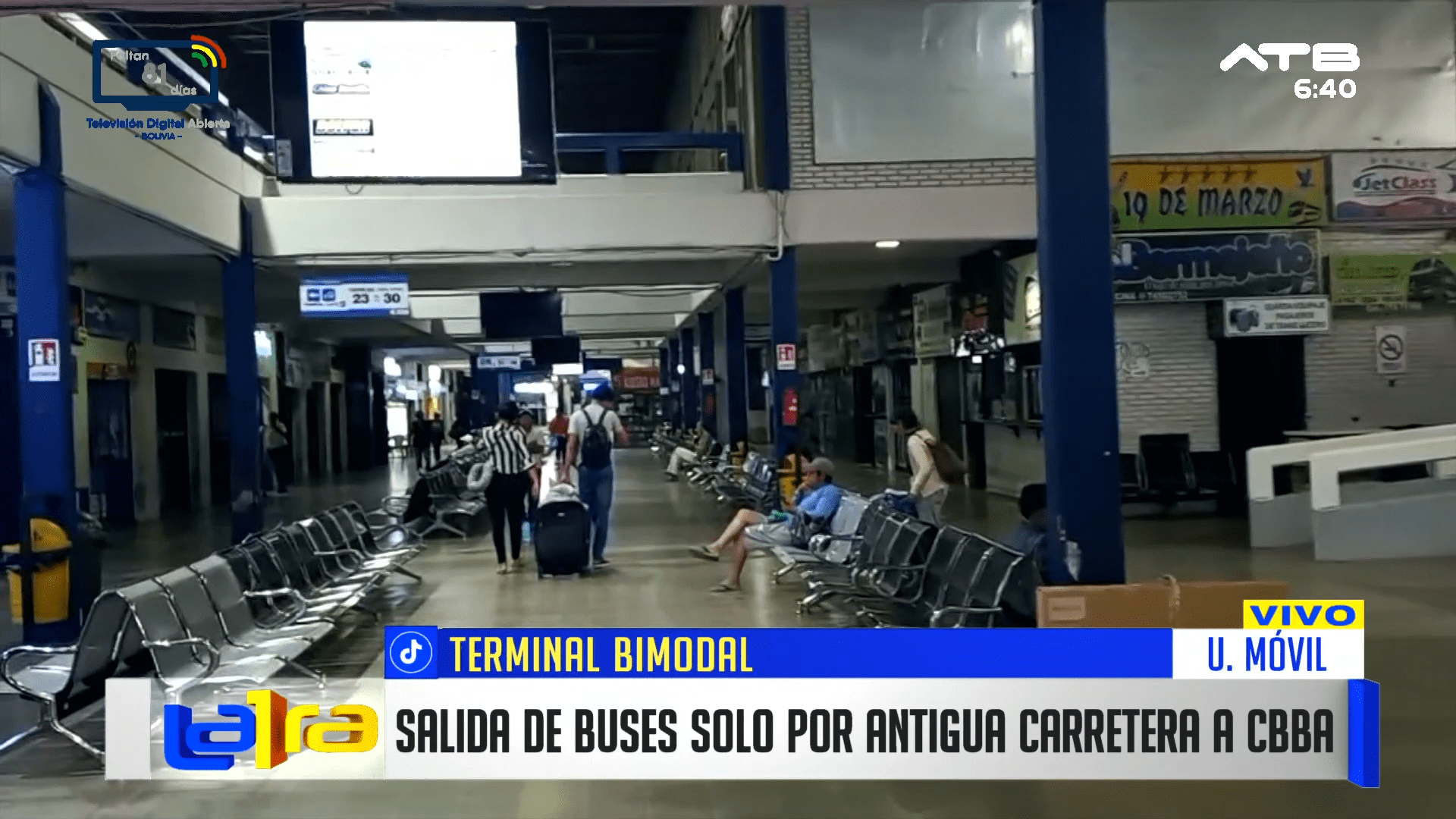 Santa Cruz, 10 de mar 2026 (ATB Digital).- Desde la Terminal Bimodal de Santa Cruz reportan dificultades en las salidas de buses debido al segundo día de bloqueo en Yapacaní protagonizado por productores de arroz.
