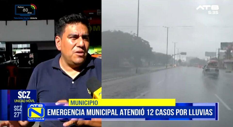 Santa Cruz, 11 de mar 2026 (ATB Digital).- El jefe de Emergencias Municipal, Rafael Abasto, informó que desde este fin de semana se atendieron al menos 12 casos relacionados con las lluvias en Santa Cruz. La autoridad además advirtió que se prevén nuevas precipitaciones para el próximo fin de semana.