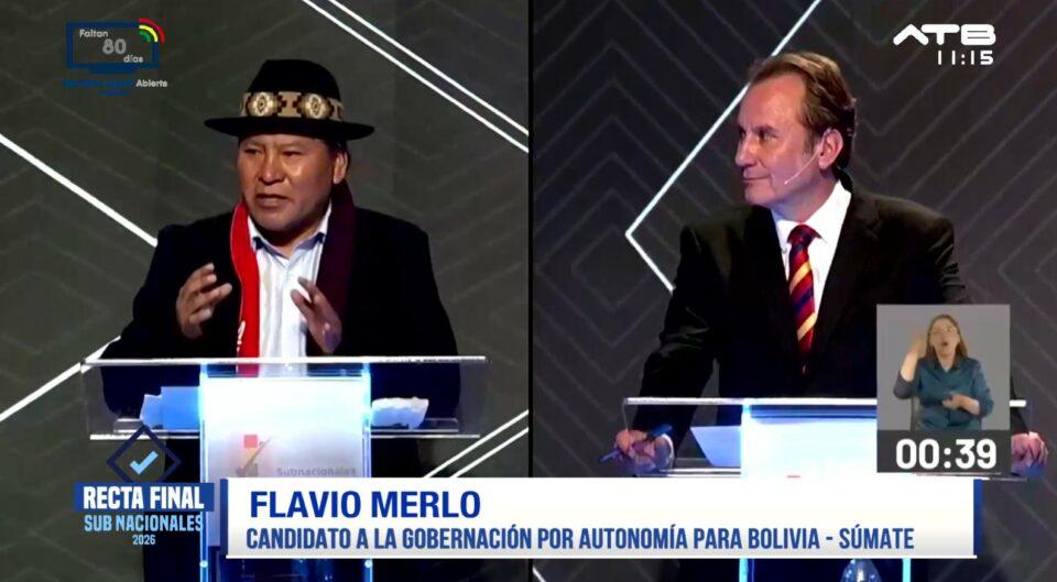 La Paz, 11 de mar 2026 (ATB Digital).- Flavio Merlo, candidato a la Gobernación, afirmó durante el debate que La Paz cuenta con atractivos únicos como cholets y ferias, y planteó un plan estratégico desde la Gobernación para potenciar los circuitos turísticos y mostrar la ciudad al mundo.