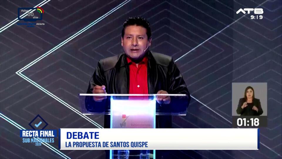 La Paz, 11 de mar 2026 (ATB Digital).- El candidato a la Gobernación de La Paz, Santos Quispe, destacó los avances alcanzados bajo el Plan Mallku, señalando que aproximadamente el 70% de la inversión departamental se ha destinado a la Red Departamental de Carreteras. Durante su intervención, subrayó la ejecución de infraestructuras clave en salud, como la Unidad de Infectología y la inscripción en el POA 2026 del Hospital de Emergencias “Felipe Quispe Huanca”.