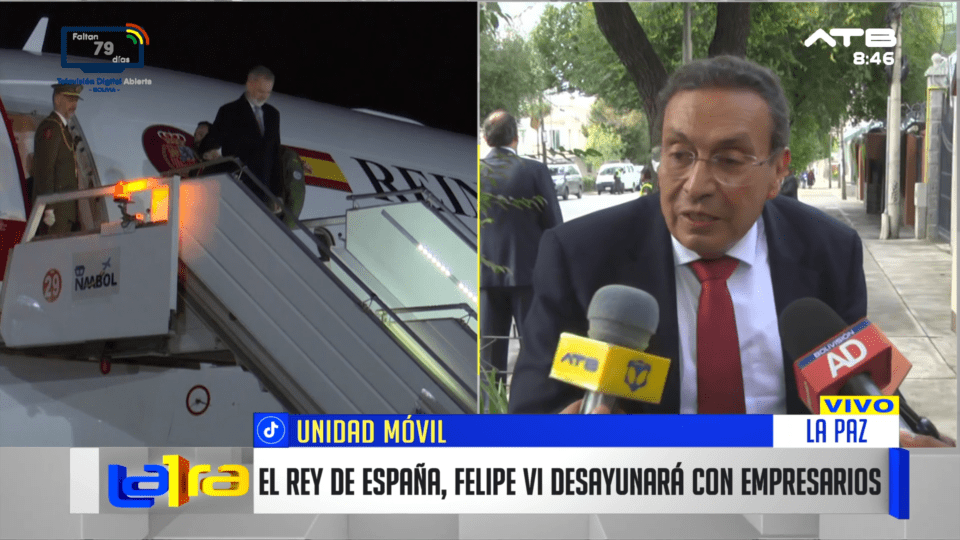 La Paz, 12 de mar 2026 (ATB Digital).- El rey de España, Felipe VI, sostendrá un desayuno con empresarios españoles y bolivianos en instalaciones de la embajada española. Al lugar continúan llegando representantes del sector empresarial que participarán en este encuentro.