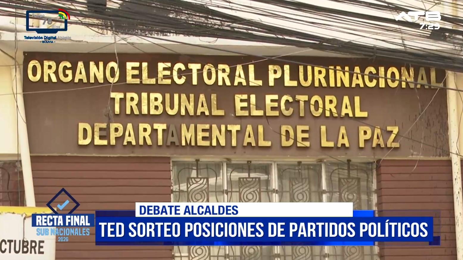 La Paz, 13 de mar 2026 (ATB Digital).- A nueve días de las elecciones subnacionales, el Tribunal Electoral Departamental de La Paz realizó este viernes el sorteo de ubicación y orden de participación para el debate de candidatos a las alcaldías de El Alto y La Paz. Los encuentros están programados para el sábado y domingo desde las 21:00, con la presencia de delegados de las organizaciones políticas.