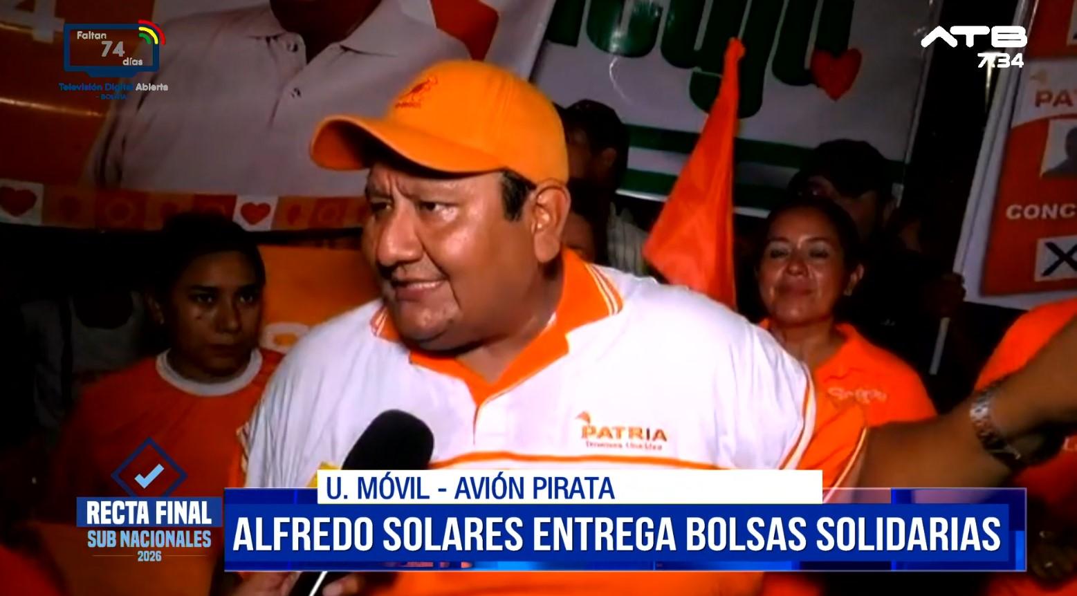 Santa Cruz, 17 de mar 2026 (ATB Digital).- El candidato a la Alcaldía por Patria, Alfredo Solares, reforzó su campaña acompañado por una gran cantidad de simpatizantes y destacó el buen recibimiento ciudadano. Anunció que cerrará su campaña con recorridos por barrios y entrega de ayuda solidaria.