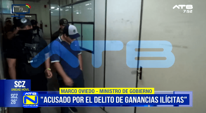 Santa Cruz, 18 de mar 2026 (ATB Digital).- El ministro de Gobierno, Marco Antonio Oviedo, informó sobre la aprehensión de Luis Marcelo Arce Mosqueira, hijo del expresidente Luis Arce, junto a otras personas, en el marco de una investigación por el presunto delito de ganancias ilícitas.