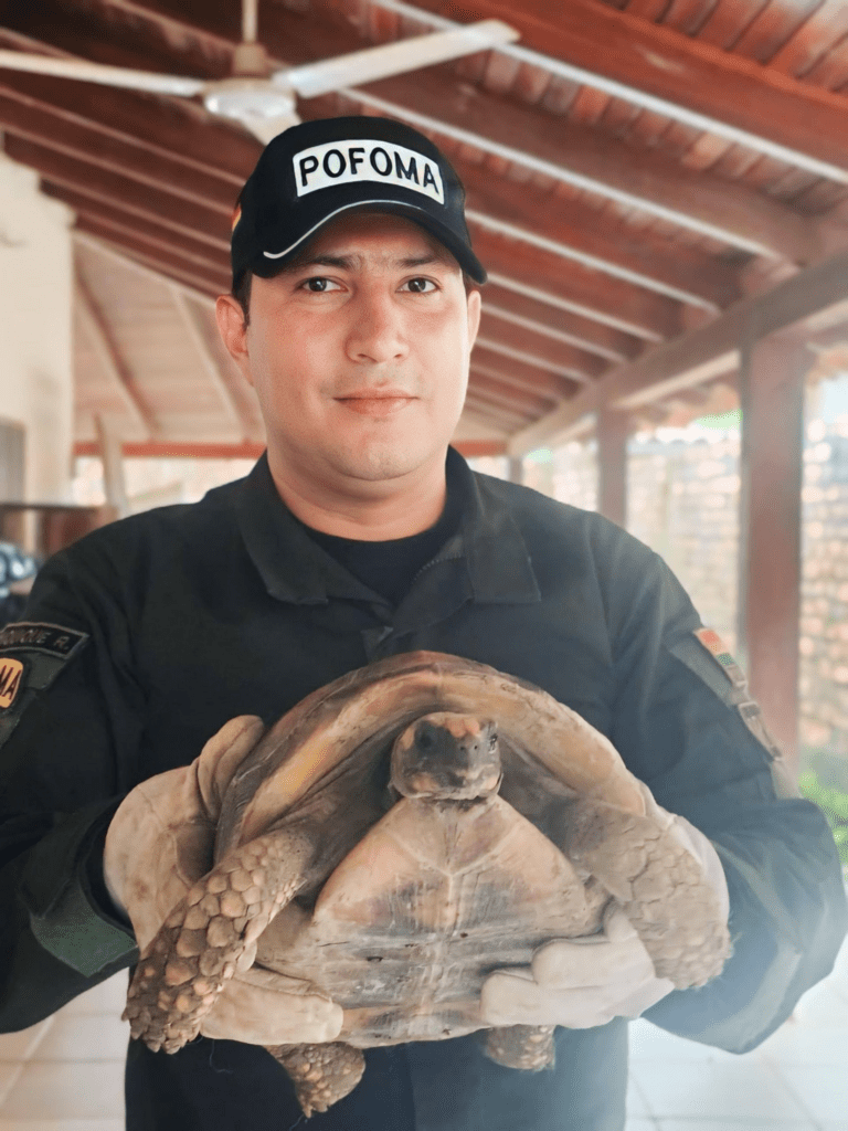 Beni, 18 de mar 2026 (ATB Digital).- La Dirección Departamental de la Policía Forestal y de Preservación del Medio Ambiente (POFOMA) Beni rescató a una tortuga terrestre que se encontraba deambulando desorientada en vía pública en la ciudad de Trinidad.