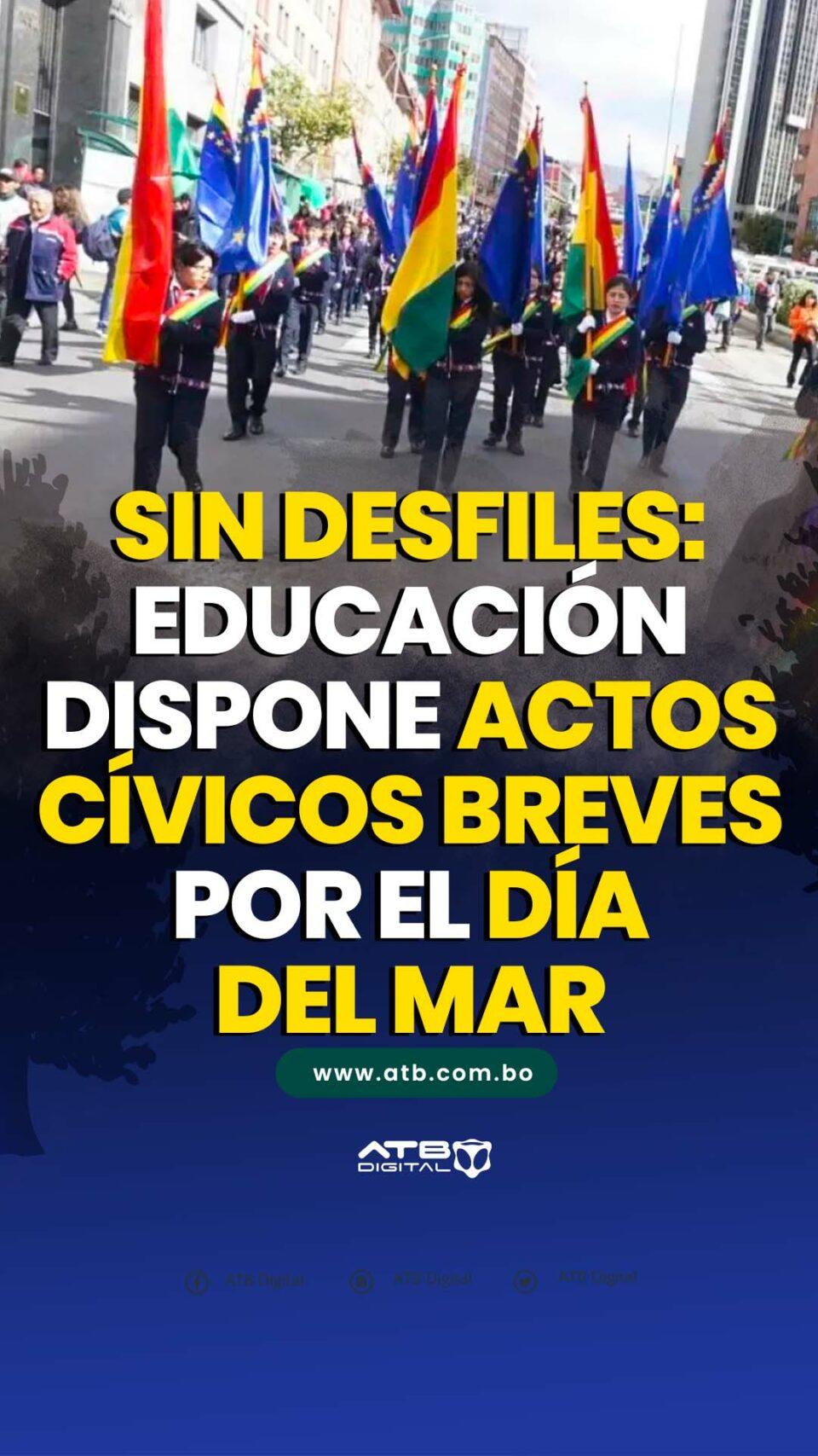 La Paz, 18 de mar 2026 (ATB Digital).- El Ministerio de Educación de Bolivia instruyó que este 23 de marzo, en conmemoración del Día del Mar, no se realicen desfiles escolares y se lleven a cabo únicamente actos cívicos breves al inicio de la jornada. La medida busca preservar el calendario académico de 200 días, sin dejar de fortalecer la conciencia marítima en los estudiantes mediante actividades como el izado de la bandera, la entonación del Himno Nacional y espacios de reflexión histórica.