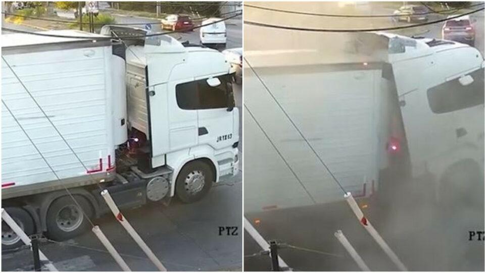 Mundo, 20 de mar 2026 (ATB Digital).- Una cámara de seguridad captó el momento en que el asfalto cedió bajo un camión en una intersección de la comuna de Renca, en Santiago de Chile, cuando el vehículo —que transportaba toneladas de queso— avanzaba lentamente y terminó desplomándose. Según el municipio, el lugar había sido previamente acordonado, pero las señales de advertencia fueron retiradas durante la madrugada, lo que dejó la zona expuesta.