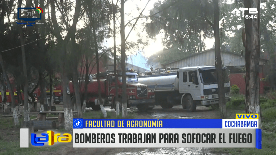 Cochabamba, 20 de mar 2026 (ATB Digital).- Un incendio se registró en la Facultad de Agronomía de la Universidad Mayor de San Simón, ubicada en la avenida Petrolera, donde bomberos trabajan para sofocar el fuego.