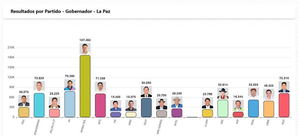 Subnacionales_2026Gobernador – La Paz marzo 22, 2026marzo 22, 2026 Compartir 🔊 Escuchar la nota Datos preliminares del sistema SIREPRE del Órgano Electoral Plurinacional dan como posible ganador a Luis Revilla en la Gobernación de La Paz, con más del 21% de apoyo hasta el momento. Los resultados son parciales y continúan en actualización.
