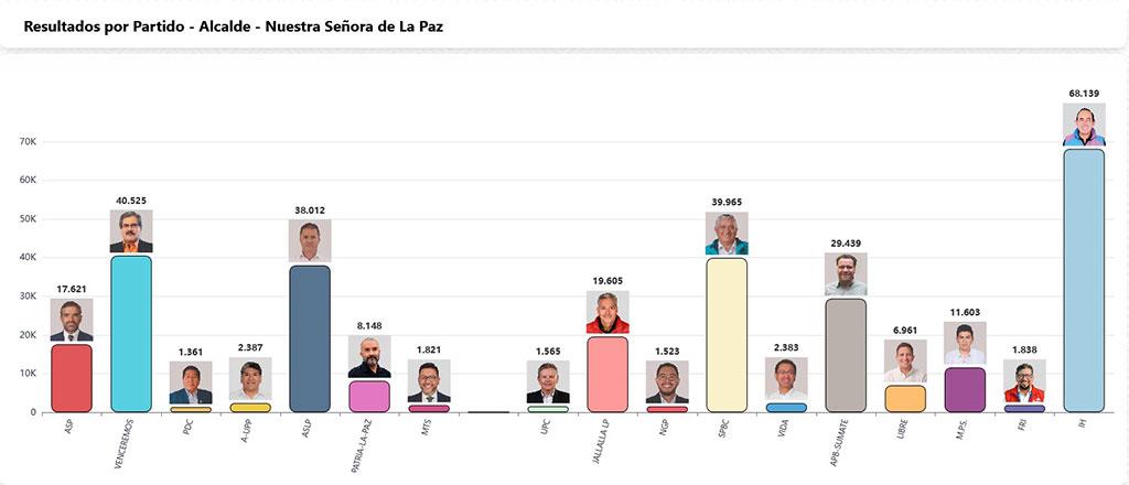 Datos preliminares del sistema SIREPRE del Órgano Electoral Plurinacional dan como posible ganador a César Dockweiler en la Alcaldía de La Paz, con más del 23% de respaldo hasta el momento. Los resultados son parciales y continúan en actualización.
