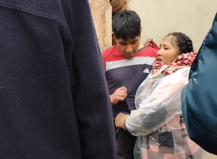 Mujer increpa a un hombre por presunta falta de pensión en inmediaciones de recinto electoral en Viacha