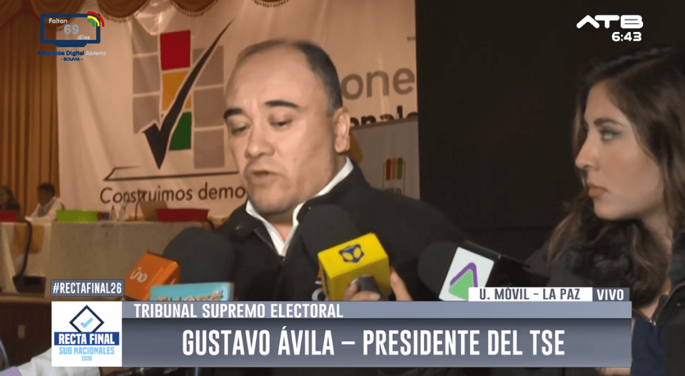 La Paz, 22 de mar 2026 (ATB Digital).- El presidente del Tribunal Supremo Electoral (TSE), Gustavo Ávila, emitió un pronunciamiento sobre la jornada de las elecciones subnacionales y destacó el desarrollo del proceso electoral.