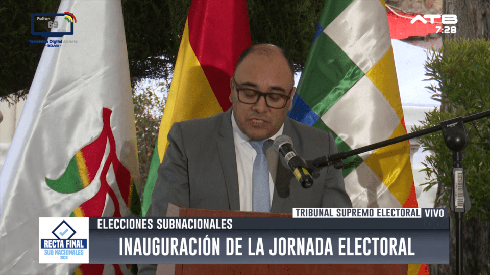 La Paz, 22 de mar 2026 (ATB Digital).- El presidente del Tribunal Supremo Electoral (TSE), Gustavo Ávila, inauguró la jornada de elecciones subnacionales 2026 y convocó a la población a ejercer su derecho al voto en todo el país. Durante el acto, la autoridad destacó que este proceso definirá el rumbo de las regiones en los próximos años.