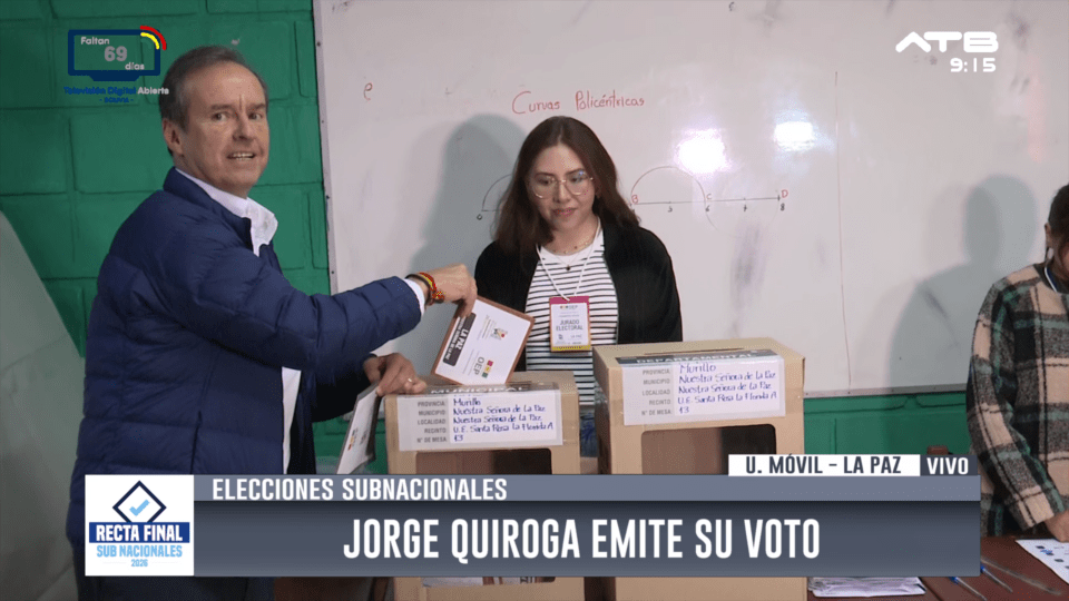 La Paz, 22 de mar 2026 (ATB Digital).- El expresidente Jorge Quiroga Ramírez emitió su voto en la jornada electoral y exhortó a la población a acudir a las urnas.
