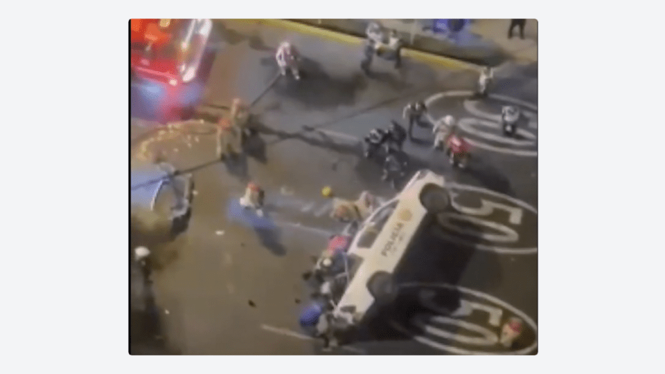 Mundo, 23 de mar 2026 (ATB Digital).- Un patrullero de la Policía Nacional de Perú fue embestido lateralmente en el distrito de Lince, en Lima, por una camioneta negra que intentaba cruzar la intersección, al ponerse un semáforo en verde. Tras colisionar, el patrullero dio dos vueltas de campana y quedó volcado, totalmente destrozado. En el vehículo policial viajaban dos agentes que se hallaban en medio de una persecución y que fueron hospitalizados. La camioneta era conducida por un médico que se dirigía a una emergencia.