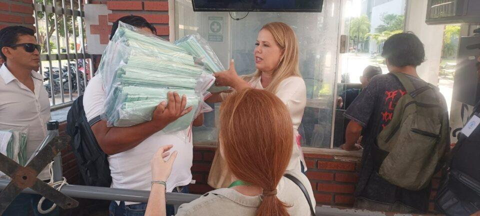 Santa Cruz, 23 de mar 2026 (ATB Digital).- La candidata a la Alcaldía por SPT, Angélica Sosa, llegó a la Fexpocruz para presentar más de 5.800 actas, ante las diferencias en los resultados del TED de Santa Cruz, que atribuye a un error numérico en la asignación de concejales.