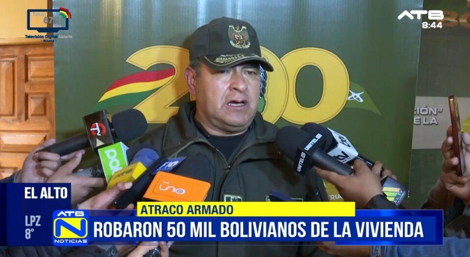 El Alto, 24 de mar 2026 (ATB Digital).- El subcomandante departamental de la Policía de La Paz, Juan Javier Salgueiro, informó que delincuentes armados ingresaron a una vivienda en El Alto y sustrajeron aproximadamente Bs 50 mil.