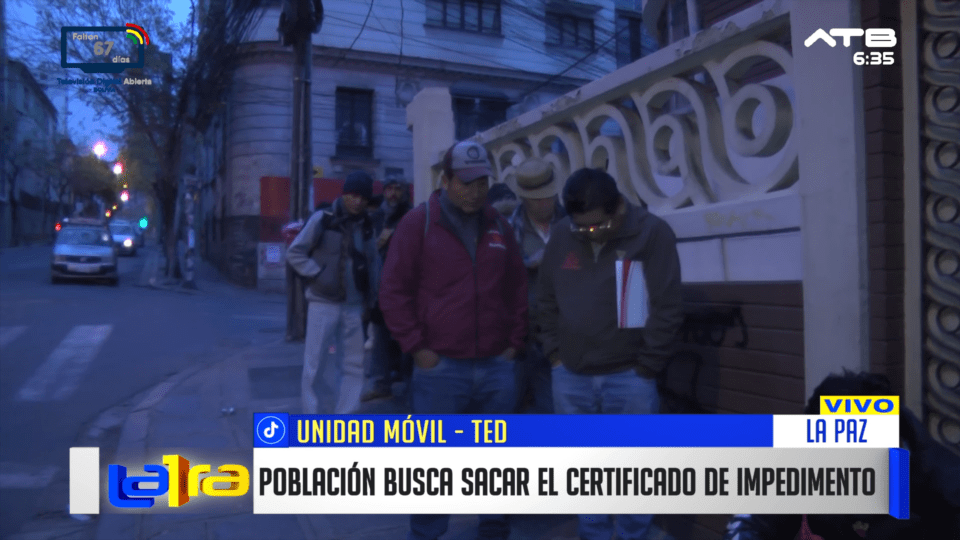 La Paz, 24 de mar 2026 (ATB Digital).- Desde tempranas horas de la mañana, la población se ha congregado frente al Tribunal Electoral Departamental (TED), esperando pacientemente para tramitar su certificado de impedimento.