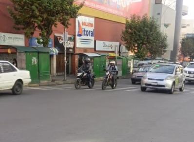 Pese a los puntos de bloqueo reportados en otras zonas, en el área central se observa desplazamiento regular de motorizados y actividad habitual.