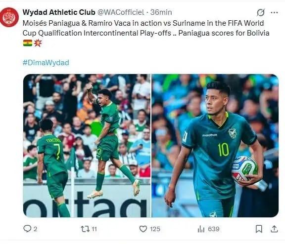 La Paz, 26 de mar 2026 (ATB Digital).- Tras la victoria de Bolivia frente a Surinam por el repechaje mundialista, varios clubes del extranjero se sumaron a las celebraciones y felicitaron a sus jugadores bolivianos que fueron parte del encuentro.