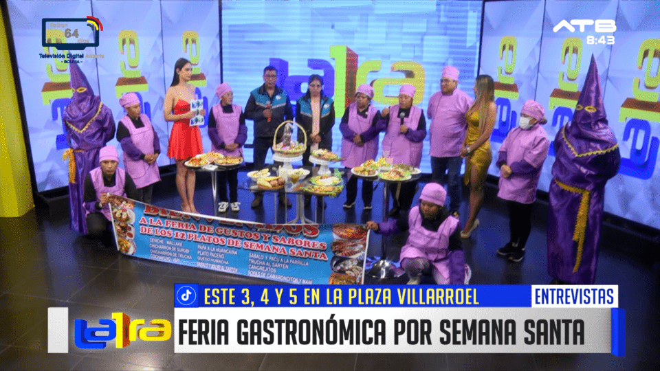La Paz, 27 de mar 2026 (ATB Digital).- La feria gastronómica “Sabores que unen en Semana Santa” se llevará a cabo este 3, 4 y 5 de abril en la Plaza Villarroel, en un horario de 09:00 a 17:00. El evento reunirá una variedad de platillos tradicionales para degustar durante estas fechas.