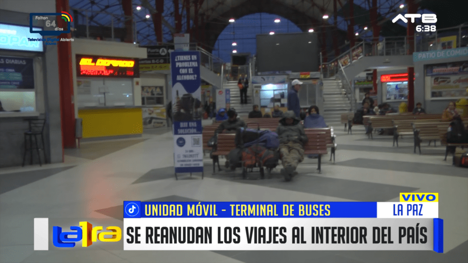 La Paz, 27 de mar 2026 (ATB Digital).- Desde la terminal de La Paz, se reporta baja afluencia de pasajeros tras dos días de bloqueos protagonizados por transportistas. No obstante, las distintas salidas ya se encuentran habilitadas y operan con normalidad hacia varios destinos.
