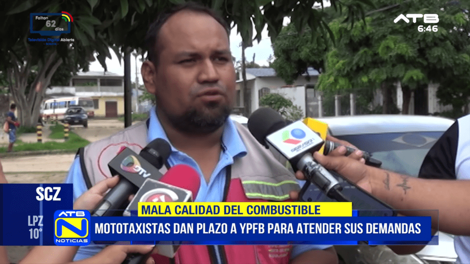Santa Cruz, 29 de mar 2026 (ATB Digital).- El sector de mototaxistas de Santa Cruz advirtió que iniciará movilizaciones desde el martes si Yacimientos Petrolíferos Fiscales Bolivianos (YPFB) no atiende sus demandas, según informó su ejecutivo, Rubén Darío Cardozo. Asimismo, expresó preocupación por la situación aunque indicó que existe el compromiso del Gobierno de resarcir los daños hasta el lunes 30 de marzo; sin embargo, no descartó asumir medidas de presión en caso de incumplimiento.