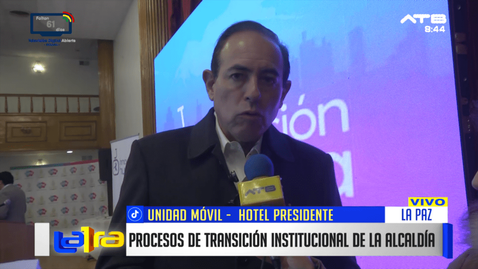 La Paz, 30 de mar 2026 (ATB Digital).- El alcalde electo de La Paz, César Dockweiler, informó que se programó una reunión para dar inicio al proceso de transición con la gestión saliente, en cumplimiento de la normativa vigente. La actividad se desarrolla en el Hotel Presidente, con la participación de equipos técnicos de ambas administraciones.