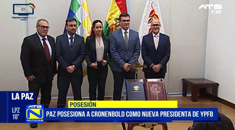 La Paz, 30 de mar 2026 (ATB Digital).- El presidente del Estado, Rodrigo Paz, posesionó este lunes a Claudia Cronenbold como nueva presidenta ejecutiva de Yacimientos Petrolíferos Fiscales Bolivianos (YPFB), en un acto realizado en la Casa Grande del Pueblo, donde la autoridad juró cumplir sus funciones en defensa de los intereses del país.