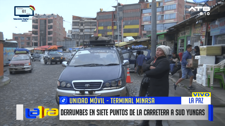La Paz, 30 de mar 2026 (ATB Digital).- Las salidas interdepartamentales se desarrollan con normalidad, a pesar de registrarse derrumbes en al menos siete puntos de la carretera hacia Sud Yungas. Las condiciones climáticas, marcadas por lluvias y neblina, generan dificultades en la transitabilidad.
