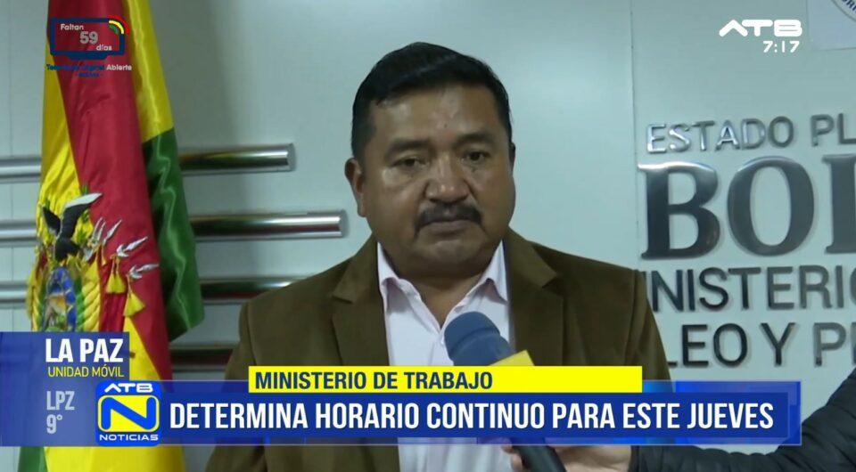 La Paz, 1 de abr 2026 (ATB Digital).- El jefe de gabinete, Marcelo Yujra, informó que este jueves se aplicará jornada continua laboral, mientras que el viernes 3 de abril será feriado nacional con suspensión de actividades públicas y privadas en todo el país.