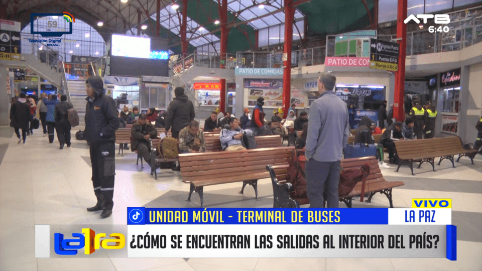La Paz, 1 de abr 2026 (ATB Digital).- Desde la Terminal de Buses de La Paz se reporta que las salidas se desarrollan con normalidad; sin embargo, por restricciones vigentes, los viajes con destino a Cochabamba están habilitados únicamente desde las 08:00. La afluencia de pasajeros se mantiene en niveles habituales.
