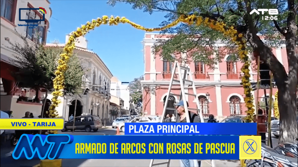 Tarija, 2 de abr 2026 (ATB Digital).- Desde la plaza principal de Tarija se inició el armado de arcos elaborados con rosas de pascua, como parte de las tradiciones que marcan la celebración de Semana Santa en la región.