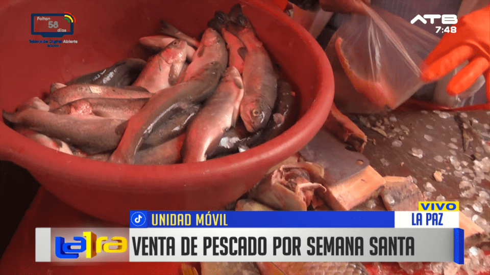 La Paz, 2 de abr 2026 (ATB Digital).- Desde el mercado de Villa Fátima, comerciantes reportan mayor movimiento en la venta de pescado por la temporada de Semana Santa, con una variedad de productos disponibles para la población.
