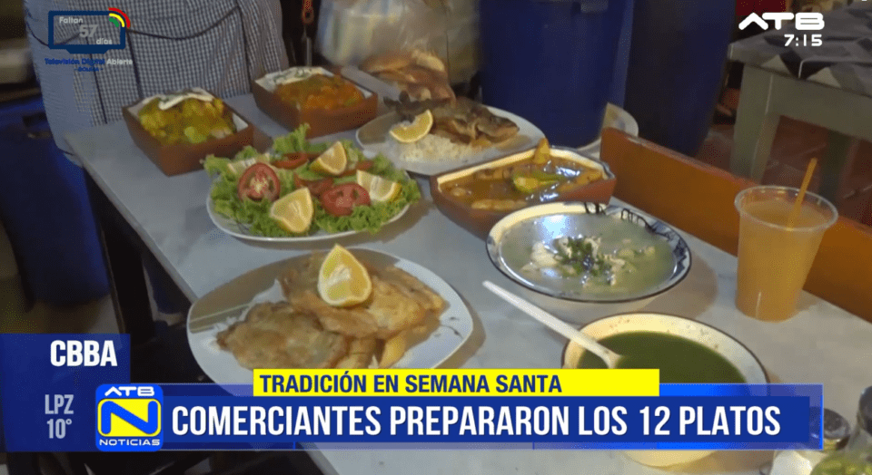 Cochabamba, 3 de abr 2026 (ATB Digital).-Durante esta Semana Santa, comerciantes del mercado popular 27 de Mayo en Cochabamba ofrecieron una variedad de platillos tradicionales conocidos como los 12 platos, preparados sin carne de res ni de pollo, en respeto a las costumbres religiosas.