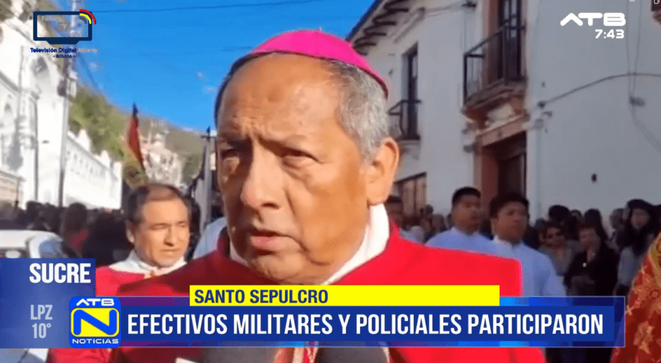 Sucre, 3 de abr 2026 (ATB Digital).- La tarde de este viernes, la tradicional procesión del Santo Sepulcro se vivió en Sucre, reuniendo después de 20 años a efectivos militares y policiales, quienes, junto a estudiantes y población en general, recorrieron las calles del centro histórico.