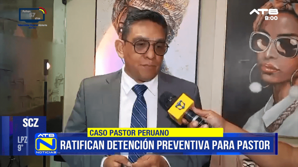 Santa Cruz, 03 de abr 2026 (ATB Digital).- El abogado de la parte denunciante en el caso del pastor peruano informó que se ratificó la detención preventiva del acusado, que deberá cumplirse en el penal de Palmasola. Asimismo, indicó que se buscará ampliar el plazo de la medida, que actualmente es de 60 días.