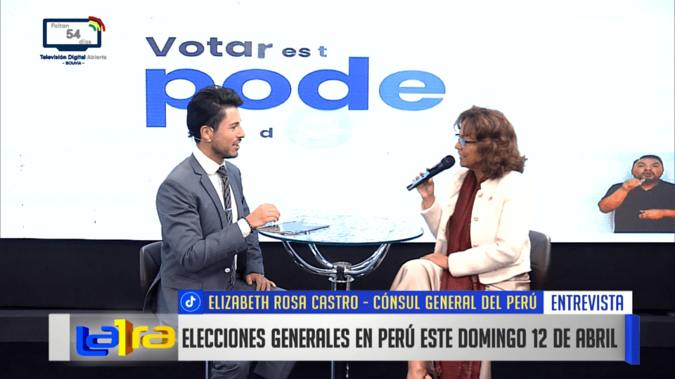 La Paz, 6 de abr 2026 (ATB Digital).- La cónsul general del Perú, Elizabeth Rosa Castro, informó sobre la realización de las elecciones generales en Perú este domingo 12 de abril, convocando a sus ciudadanos residentes en Bolivia a participar del proceso.