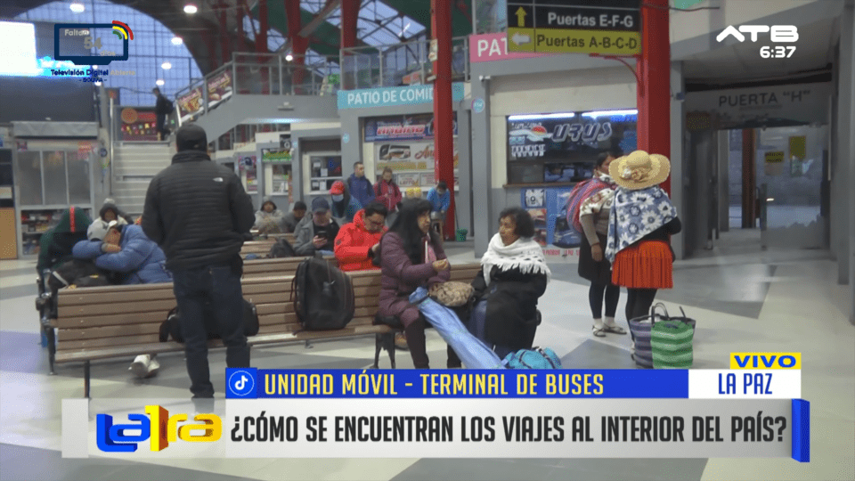 La Paz, 6 de abr 2026 (ATB Digital).- Desde la terminal de La Paz se suspendieron las salidas hacia Oruro, Cochabamba y Santa Cruz debido a bloqueos instalados en distintos puntos de las carreteras. La medida se registra tras el fin de semana largo por Semana Santa, generando retrasos en el retorno de pasajeros.