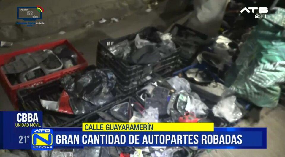 Cochabamba, 8 de abr 2026 (ATB Digital).- Efectivos de la Dirección de Prevención de Robo de Vehículos (Diprove) intervinieron una tienda en el barrio Chino de Cochabamba, donde secuestraron gran cantidad de autopartes presuntamente robadas y aprehendieron a una persona.