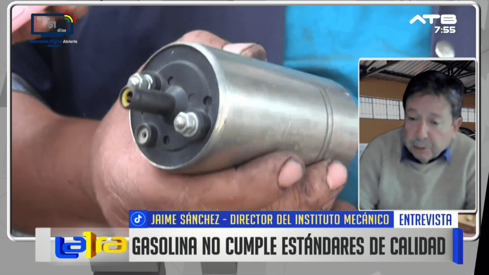 La Paz, 9 de abr 2026 (ATB Digital).- Jaime Sánchez, director del Instituto Mecánico, afirmó que la gasolina no estaría cumpliendo con los estándares de calidad. Señaló que los laboratorios móviles de la ANH presentan limitaciones y que en las pruebas se habrían omitido componentes críticos para su evaluación.