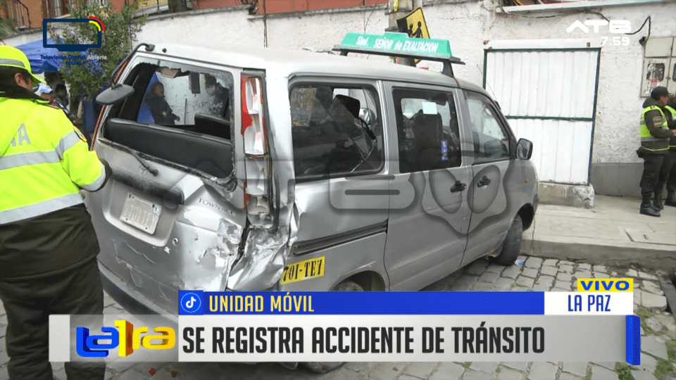 La Paz, 9 de abr 2026 (ATB Digital).- Un accidente de tránsito se registró a puertas del colegio Liceo República de Francia, donde un camión chocó y arrastró a un minibús, que terminó trancado contra un poste ubicado a escasos metros de la entrada y a metro y medio de kioscos cercanos.