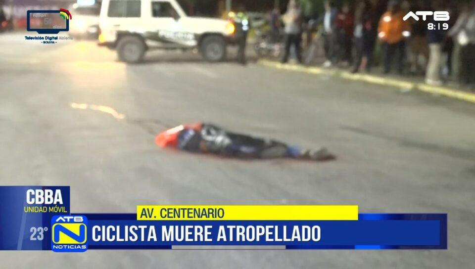 Cochabamba, 9 de abr 2026 (ATB Digital).- Un ciclista de aproximadamente 35 años perdió la vida tras ser atropellado por un tractocamión en un hecho de tránsito registrado en la avenida Centenario, en la ciudad de Cochabamba. El accidente es tipificado como atropello peatonal y movilizó a unidades de emergencia y tránsito.